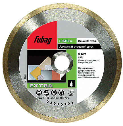 Алмазный диск Keramik Extra Fubag 33250-6 является сменным элементом для плиткорезов. необходима для реза высокого качества керамической плитки, тонких гранитных и мраморных плит, прессованного камня, стекла. Работа осуществляется только при наличии водяного охлаждения.