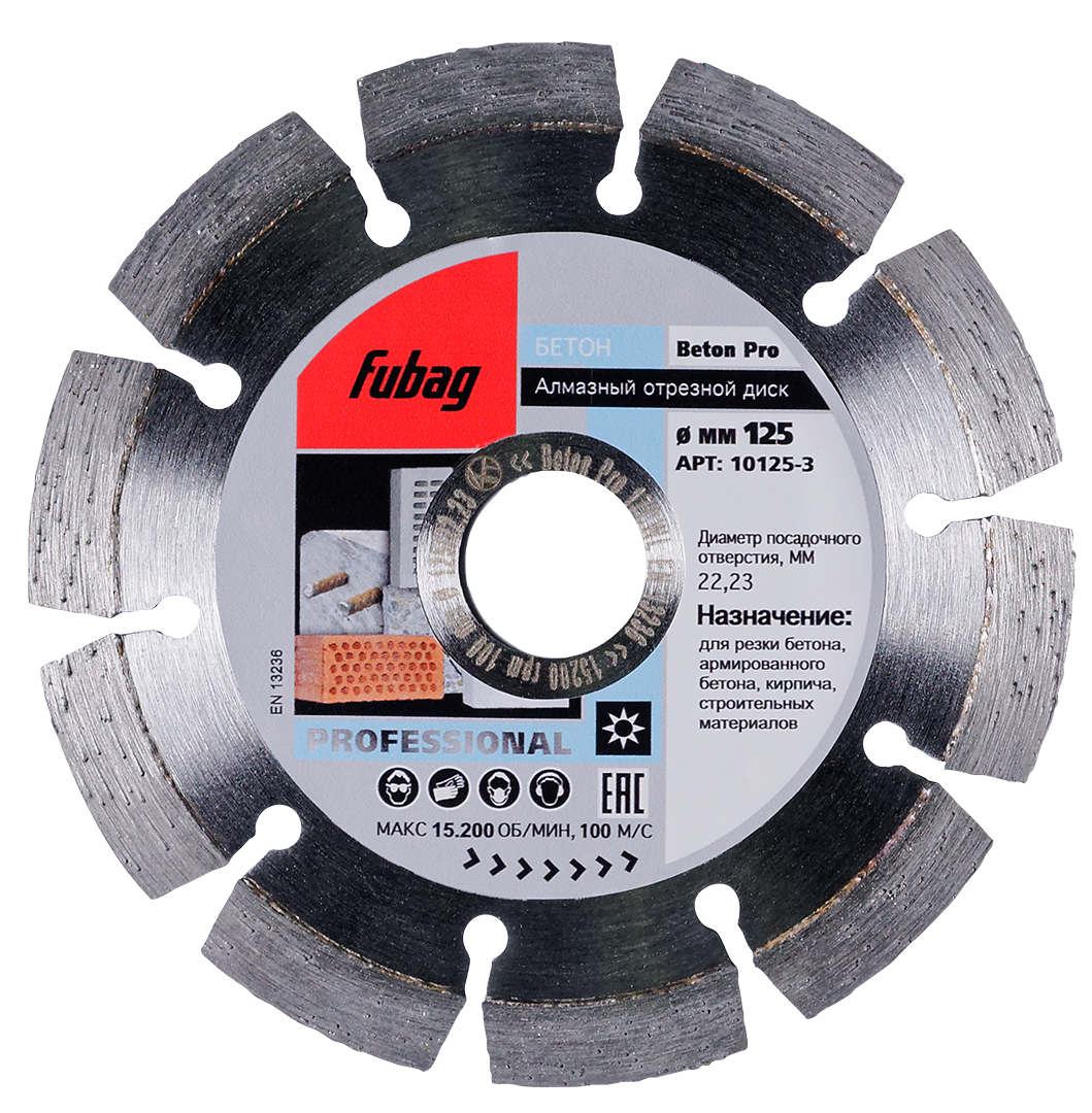 Алмазный диск Beton Pro диам 125/22.2 является сменным элементом для угловых шлифовальных машин. Применяется для реза бетона, армированного бетона, прессованного бетона, бетонных труб, твердого камня и различных строительных материалов. Высота сегментов — 10 мм.