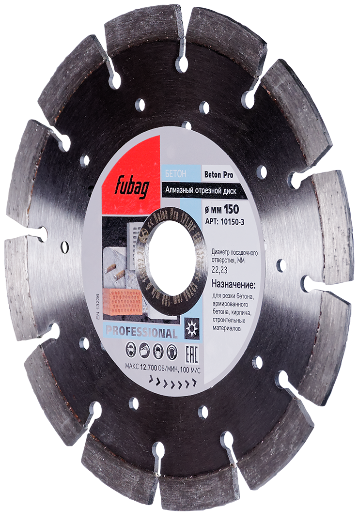 Алмазный диск Beton Pro диам 150/22.2 является сменным элементом для угловых шлифовальных машин. Применяется для реза бетона, армированного бетона, прессованного бетона, бетонных труб, твердого камня и различных строительных материалов. Высота сегментов — 10 мм.
