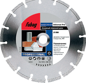 Официальный дилер Fubag. Отрезные алмазные диски Fubag Professional Universal Pro предназначены для обработки бетона, выдержанного бетона, красного кирпича, среднетвёрдого кирпича, строительных материалов. Диски этой программы - лучший выбор для формирования постоянного ассортимента соответствующего отдела строительного супермаркета или специализированного магазина. Маркировка дисков программы Professional включает обозначение обрабатываемого материала и условное обозначение линейки, например: Universal Pro.. Ремонт и обслуживание в авторизованном сервисном центре. Бесплатная техническая поддержка.