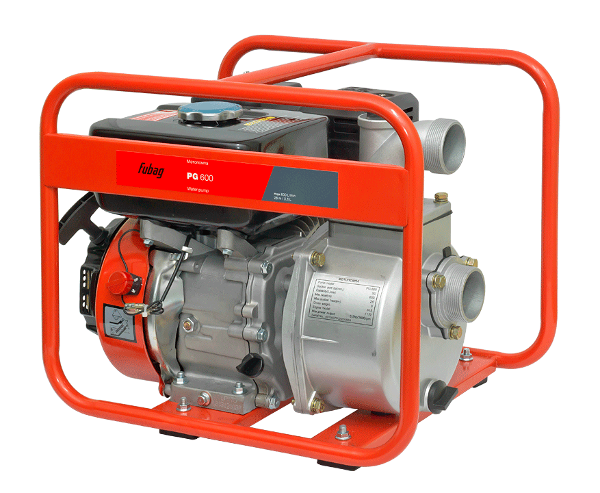 Мотопомпа бензиновая для чистой воды PG 600 с производительностью 600 литров в минуту от производителя Fubag необходима при различных работах при которых требуется перекачка чистой и слабозагрязненной воды, такие как осушение подвалов, идеальное решение для полива дачного участка и других сельскохозяйственных работ, возможность использовать как сдерживание пожаротушения до приезда пожарной службы. Она легкая и имеет небольшие габариты, ее можно без трудности перемещать по необходимости. Подходит для слабозагрязнённой воды с максимальным размером частиц диаметром 4 мм. Номинальная мощность двигателя ровна 3,8/ 4,8 кВт/л.с. Максимальная высота всасывания 8 метров, а максимальная высота напора 26 метра. Рекомендуемое топливо для использования в мотопомпе – бензин А-92.