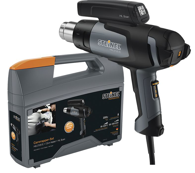 Набор по нанесению пленки. HG 2120 E (2200W_80-630°C_150-500 л/мин_ регулировка температуры 9-ти ступенчатая) + кабель 7.5м + температурный сканер HL Scan + кейс