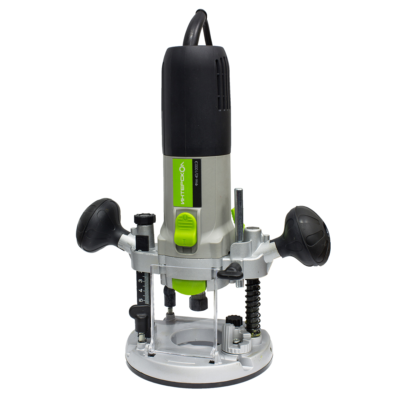 Ведущий российский производитель электроинструментов Интерскол представляет серию фрезеров ручного управления различной мощности и размером фрезы. Фрезер ФМ-40/1000Э мощностью 1,1 кВт может выполнять самые различные работы, с помощью дополнительных примочек и электронных настроек, с возможностью наклона разных плоскостей. Для точной настройки глубины используется револьверный упор с максимально допустимой глубиной 44 мм, скорость вращения при этом 10000 – 25500 об/мин. Управляется она с помощью двух рукояток, расположенных по бокам фрезера.