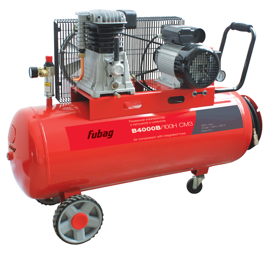 Официальный дилер Fubag. Поршневой масляный ременной одноступенчатый компрессор Fubag B4000B/100H CM3 с катушкой и шлангом рекомендован для всех видов работ на небольших производствах, в мастерских, в гражданском и военном строительстве и гаражном хозяйстве. Преимущества: двухцилиндровая одноступенчатая алюминиевая головка, с увеличенными ребрами охлаждения; улучшенная конструкция воздушного фильтра; большие колеса, одно направляющее колесо для большей манёвренности; ручка с резиновой накладкой для удобства транспортировки.. Ремонт и обслуживание в авторизованном сервисном центре. Бесплатная техническая поддержка.