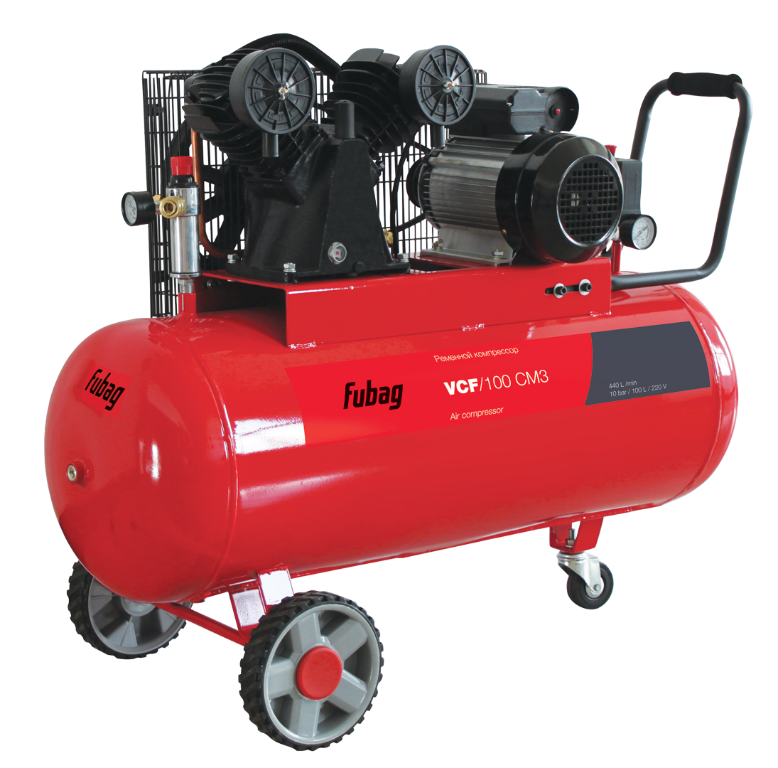 Официальный дилер Fubag. Двухцилиндровый поршневой масляный ременной одноступенчатый компрессор Fubag VCF/100 CM3 производительностью 440 л/мин, мощностью 2,2 кВт, ресивером на 100 л. - рекомендован для всех видов работ на небольших производствах. Преимущества ременных масляных компрессоров FUBAG: блок цилиндров сконструирован на основе новых прогрессивных технологий: гильза изготовлена из высококачественного чугуна, а головки цилиндров – из алюминия с большими охлаждающими ребрами для эффективного воздушного охлаждения; увеличенный масляный картер обеспечивает высокоэффективную работу; пластины клапанов из специальной износостойкой нержавеющей стали для максимальной производительности в течение всего срока эксплуатации; динамически сбалансированный маховик с охлаждающими лопастями увеличивает ресурс и поддерживает оптимальный тепловой режим компрессора; электрический двигатель с теплозащитой от перегрева и автоматическим повторным пуском для жестких условий эксплуатации; простота конструкции и эксплуатации.. Ремонт и обслуживание в авторизованном сервисном центре. Бесплатная техническая поддержка.