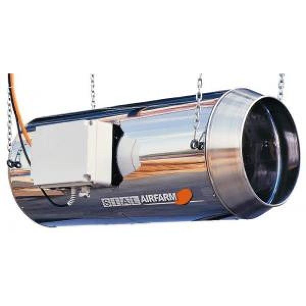 Нагреватель газовый AIRFARM 6000(AFR 95 T) предназначен для обогрева помещений с хорошей вентиляцией: ферм, цехов, лабораторий. Корпус устройства изготовлен из нержавеющей стали, что обеспечивает надежность и долговечность эксплуатации. На корпусе предусмотрено четыре крепления, позволяющих подвешивать пушку. Возможно подключение комнатного термостата. При несрабатывании данного оборудования включается сигнализация.