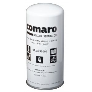 Сепаратор COMARO 01.03.90023 служит для осушения сжатого воздуха путем удаления из него конденсата и частиц масла центробежными силами. Используется в пневмомагистралях с компрессорами COMARO серии LB мощностью 18.5-22 кВт. Обладает высокой производительностью и высоким уровнем очистки воздуха.