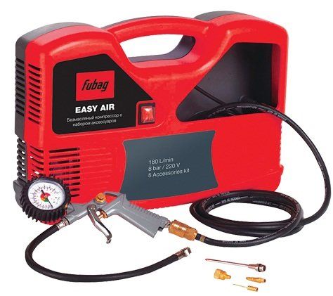 Компрессоры Fubag серии AIR Данная линейка представлена всего 2-мя моделями:FUBAG Easy Air FUBAG Smart Air Каждая из которых характеризуется двумя основными параметрами: •коаксиальные•безмасляные Такие компрессоры незаменимы в быту. Надежный, профессиональный, идеально подходят для ремонта, применения в повседневной жизни, активного отдыха, а так же для автомобилистов. Каждый из данных компрессоров комплектуется высокотехнологичным и продуманным до мелочей набором. В комплект входит: воздушный шланг, длина 3 метра; пистолет для накачки шин; 3 насадки: для надувки мячей, для накачки матрасов, и для накачки велосипедных колес. Все это занимает совсем мало место для хранения и легко поместится в любом багажнике – ведь в корпусе компрессора содержится отсек для хранения всего комплекта, к тому же оснащен фиксаторами для удерживания насадок.Главной отличительной чертой данных компрессоров является отсутствие масла. Этот параметр незаменим в тех случаях, когда сжатый воздух должен обладать крайне высоким качеством; в таком воздухе полностью исключено присутствие каких-либо примесей, в частности, частиц компрессорного масла. В связи с этим, рекомендуется применять именно безмасляные компрессоры при покрасочных работах, производстве мебели, а так же в фармацевтической, пищевой промышленности и при производстве высокотехнологичной электроники. Данный параметр так же позволяет существенно снизить затраты на обслуживание оборудования, поскольку вместо масла используется вода. Соответственно такой компрессор экономный, не потребует замены масла, фильтра или покупки дополнительного оборудования для утилизации отработанных маселПо типу привода компрессоры данной линейки относятся к коаксиальным, говоря простым языком: они оснащены двигателем с прямым приводом. Что несет ряд преимуществ. Производительный. Обладая прямым приводом, они не оснащаются теми деталями, которые приводят к потере мощностей, а так же удорожанию всей конструкции. Так же, при изготовлении компрессора с коаксиальным приводом, используются исключительно антифрикционные материалы, то есть те, которые признаны наиболее износоустойчивыми, что и продлевает срок службы аппарата. Многие «обвиняют» коаксиальные компрессоры в низком уровне шумоизоляции, поэтому при покупке важно учесть такую особенность и обратить особое внимание на уровень шума компрессора. Тем не менее, данный недостаток компенсируется минимальными габаритами и весом; работая в небольших помещениях, габариты оборудования часто играют не мало важную роль. Каждый из компрессоров этой линейки оснащен пластиковым кожухом, благодаря чему увеличивается скорость охлаждения всего компрессора, таком образом защищая аппарат от перегрева.Нам стоит доверять!Эксклюзивные предложения за 2 часа!Оперативная реакция на все ваши запросы!Ответственный менеджер — мы знаем, как работать именно с Вами!Несколько фактов почему компрессоры Fubag серии AIR лучше заказать и купить у НАС!!!•Мы являемся официальным дилером бренда FUBAG — цены на этот товар Вы ниже не найдете!• Гарантия от производителя! На компрессоры FUBAG серии AIR до 2 лет + документация в комплекте!•Продукция FUBAG поступает к нам напрямую со склада дистрибьютора в Москве — обеспечим доставку за минимальные сроки и дешево!•Работаем с документами аккуратно и 