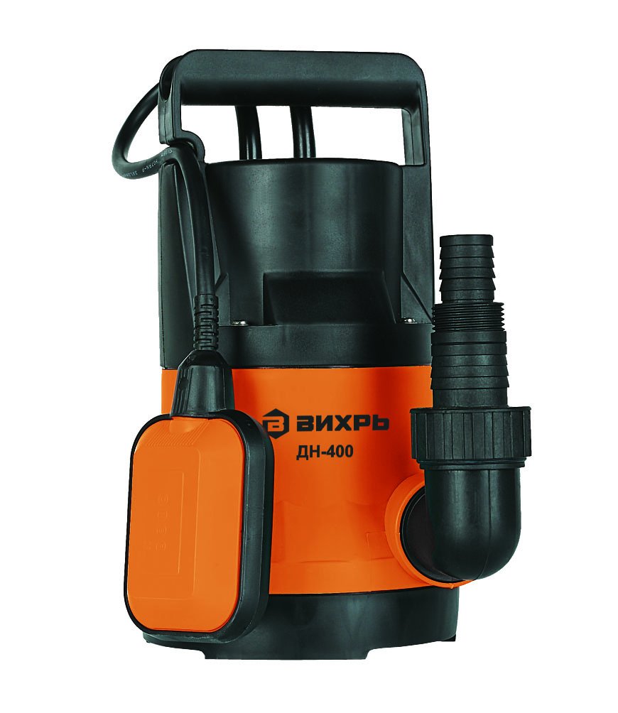 Дренажный насос ДН-400 Вихрь – это отличное средство в бытовых условиях для перекачки воды из рек, колодцев, подвалов и т.д. со средней загрязненностью допуская диаметр твердых частиц до 5 мм, мощность двигателя 400 Вт. Аппарат необходимо обязательно погружать в водоем, на сухую его использовать нельзя. Корпус насоса изготовлен из высокопрочного пластика, который не подвергается коррозии и это способствует долговременной службе. Его максимальная высота напора достигает 8 метров, а производительность до 11,3 м3/час, патрубок на выходе диаметром 1,5 дюйма.