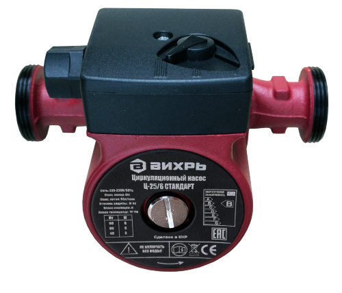 Циркуляционный насос Ц-25/6 СТАНДАРТ Вихрь используют для нагнетания и перекачки воды в системе отопления, для более эффективной работы и экономии энергии. Этот насос подходит для труб диаметром 25 мм, расположение должно быть в горизонтальном положении. Потребляемая мощность двигателя 40/60/90 изменения зависят от ступени регулирования напора 3м, 5м, 6м, он меняется с помощью расположенного на корпусе регулятора. Максимальная скорость перекачки 50 л/мин, а давление доходит до 10 бар. Преимущества такого насоса в его компактности, удобство в применении и высокое качество составляющих.