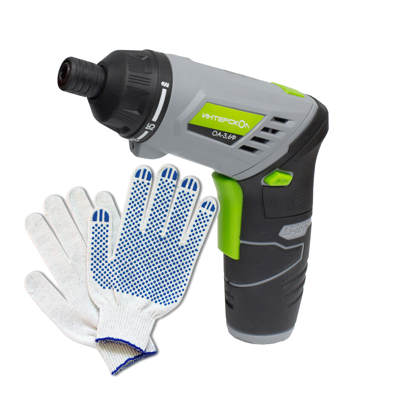 Аккумуляторный шуруповерт Интерскол ОА-3.6Ф ДМ + Перчатки хозяйственные