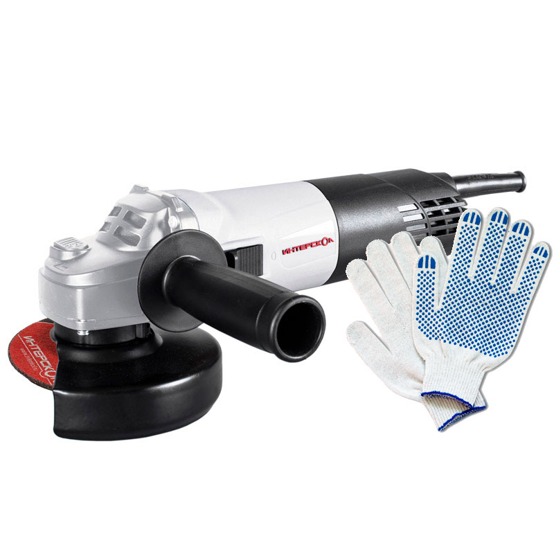 Угловая шлифовальная машина УШМ-125/900 Интерскол + Перчатки хозяйственные