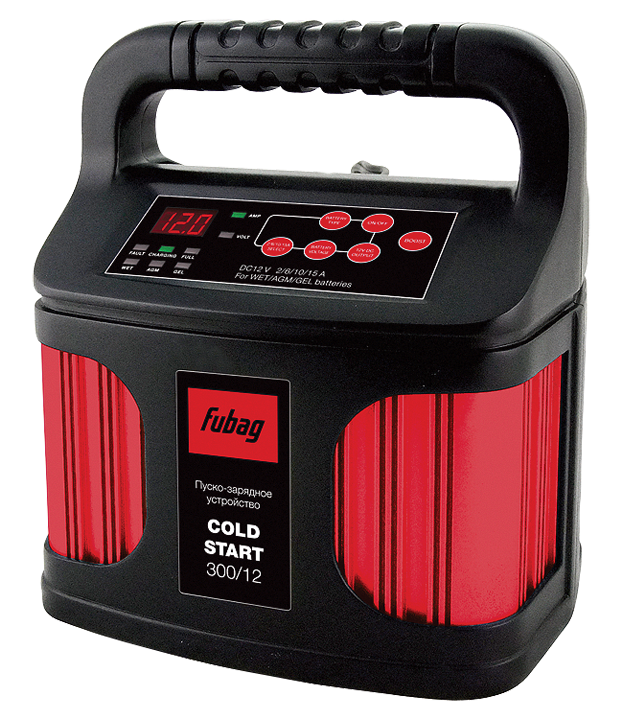 Официальный дилер Fubag. Новая модель автоматического пуско-зарядного устройства COLD START 300/12 обеспечивает бесперебойную работу и возможность запуска аккумулятора в холодное время года, а также может быть использована для эффективной зарядки батареи импульсным напряжением с предварительным ее восстановлением (десульфатизацией). Использование самых современных технологий позволило получить это достаточно мощное устройство (возможность зарядки аккумуляторов с емкостью до 300 Ач!) в очень компактном исполнении с весом менее 1,5 кг. цифровая индикация тока зарядки и напряжения аккумулятора; 9-ступенчатая интеллектуальная программа зарядки; возможность зарядки различных типов аккумуляторов (AGM, GEL, WET); защита от короткого замыкания и неправильной полярности; компактные габариты, малый вес; отсек для хранения кабелей и зажимов.. Ремонт и обслуживание в авторизованном сервисном центре. Бесплатная техническая поддержка.