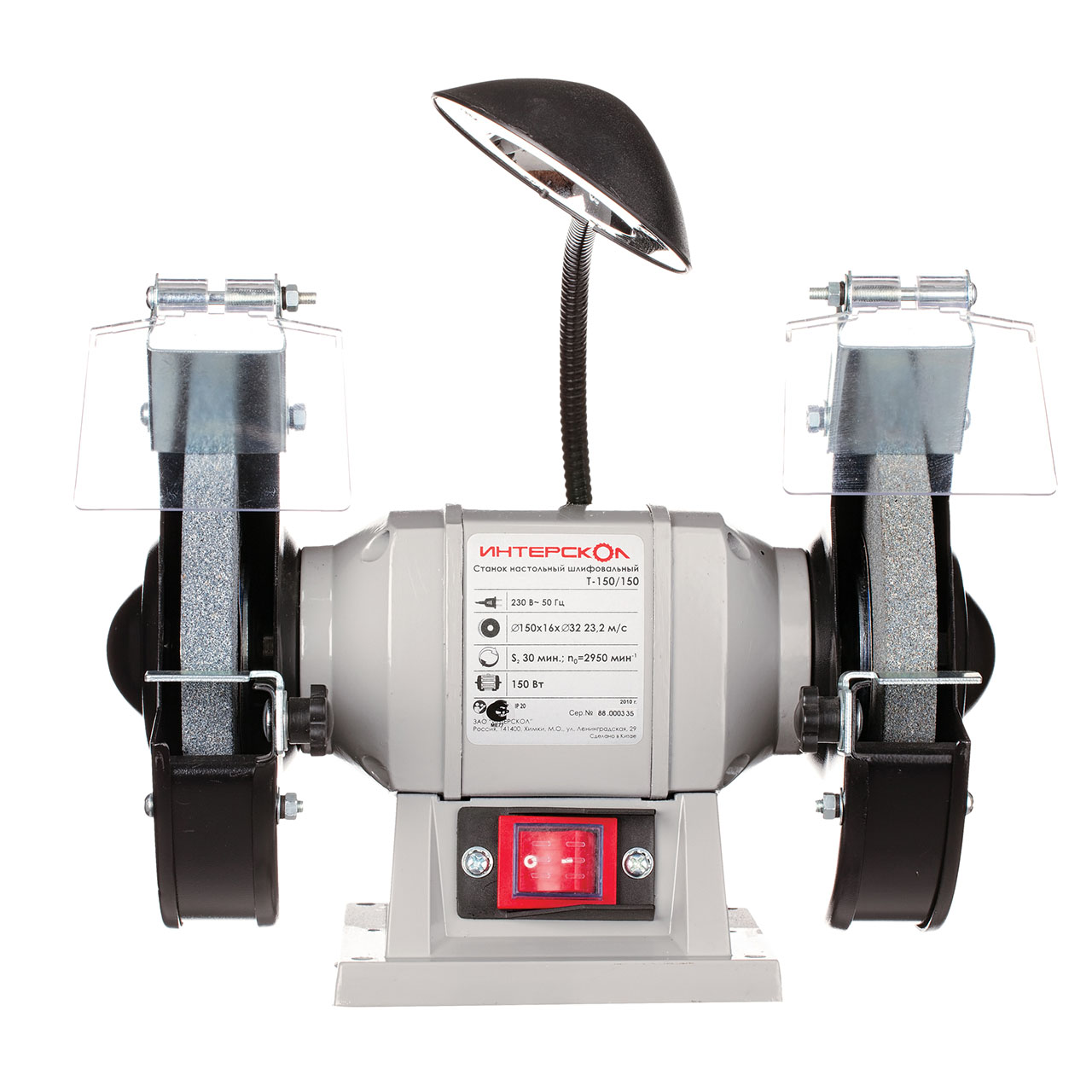 Лидер по производству электроинструментов в России Интерскол представляет линейку машин для заточки различных металлических инструментов, деталей и приборов для резки. Машина настольная шлифовальная Т-150/150, мощность которой 150 Вт, скорость вращения по окружности 23,2 м/с, оборотистость достигает 2950 об/мин, диски для этой машины используются не более 150 мм диаметром и шириной 16 мм. Непосредственно на аппарате установлена лампа с регулировкой положения, для безопасности и защиты от искр предусмотренные защитные стекла на каждый диск, для устойчивости в комплект входит два упора.