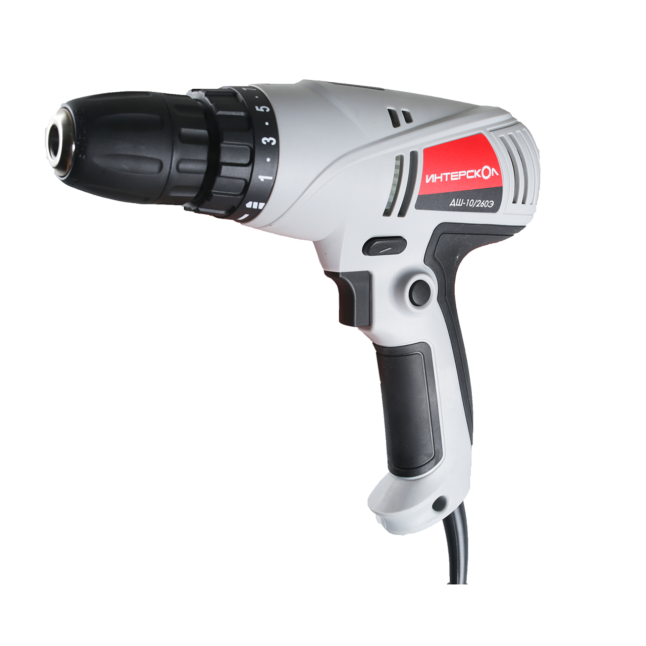 Дрель-шуруповерт ДШ-10/260Э от российского производителя Интерскол, является отличным строительным инструментом, работающий от сети 220 В, который может заменить аналог с аккумулятором, в случае длительной и серийной работы. Он оснащен односкоростным планетарным редуктором, что способствует увеличению вращательного момента, а также небольшого веса. Мощность аппарата 260 Вт, частота вращения на холостом ходу достигает 800 об/мин, количество ступеней моментов 20 и плюс режим дрели. Шуруповерт имеет постепенную регулировку скорости оборотов и сменяемое направление вращения патрона.