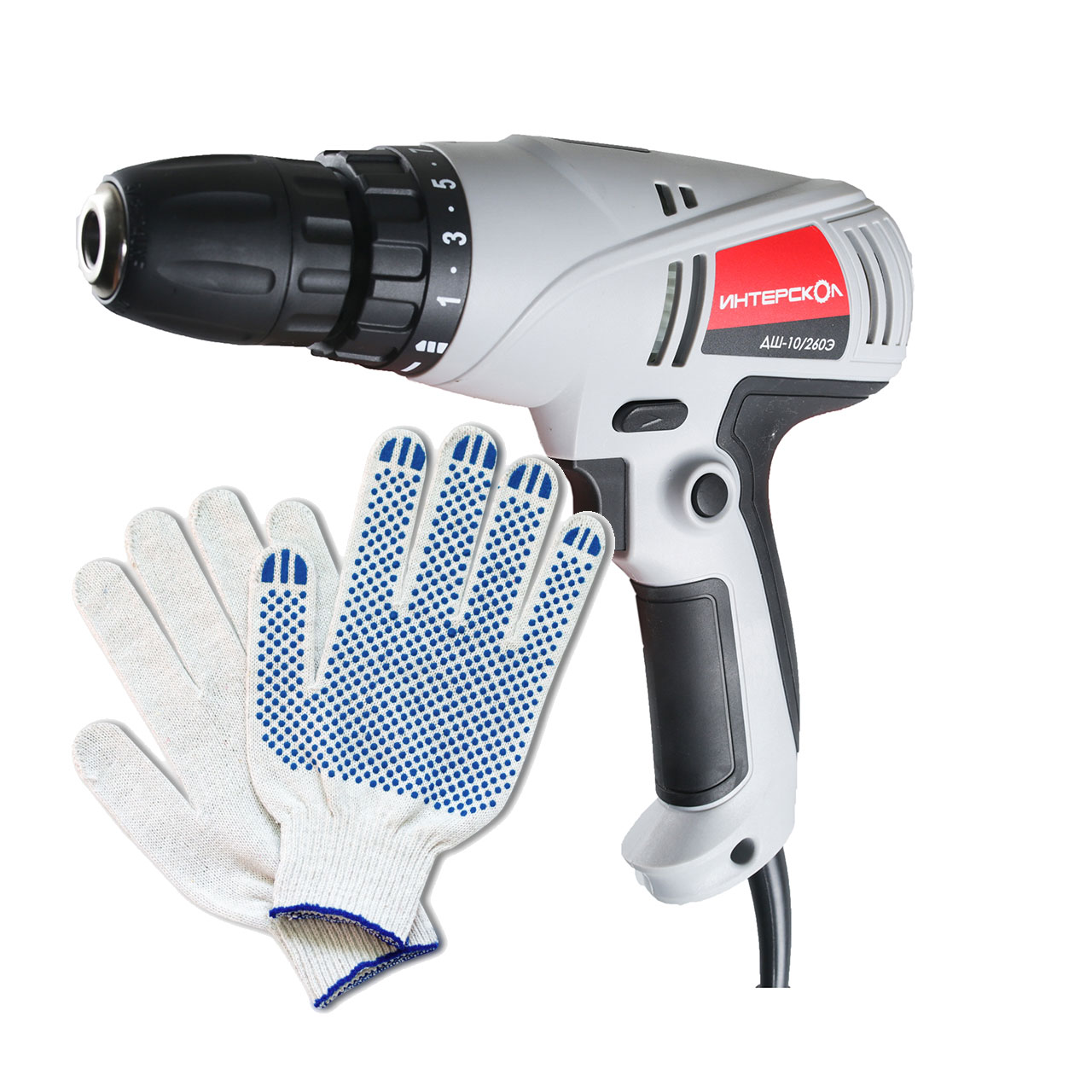 Дрель-шуруповерт ДШ-10/260Э2 Интерскол + Перчатки хозяйственные