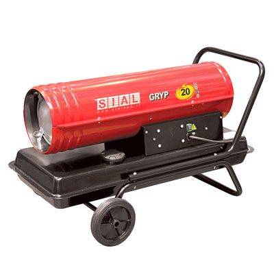 Тепловые пушки Sial Gryp 20 работают на жидком топливе. Они рекомендуются для сушки при строительных работах, отопления средних и больших помещений с хорошей вентиляцией.