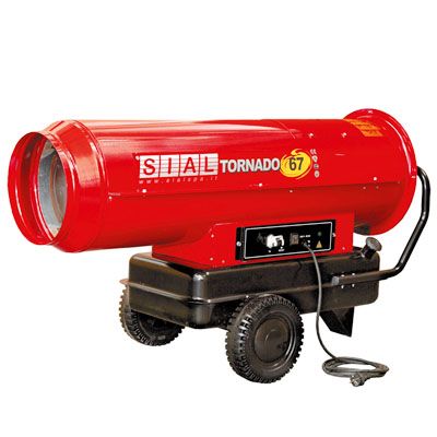 Тепловые пушки Sial Tornado 67 на жидком топливе. Рекомендованы для применения на стройках, обогрева помещений средних и больших размеров с хорошей вентиляцией.