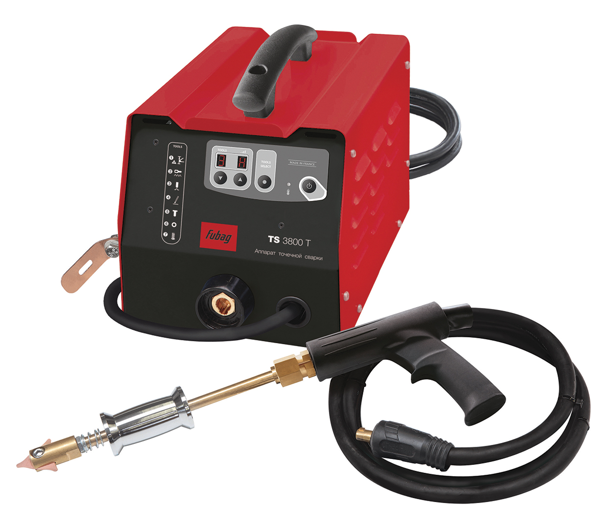 На протяжении многих лет немецкая компания Fubag доказывает, что его продукция – это качество и долголетие, благодаря своим постоянным новейшим разработкам. Споттеры TS от Fubag являются надежными и лучшими помощниками для ремонта кузовов автомобилей, устранит вмятины и любые неровности на стальной поверхности. Система настроек синергетическая, которая упрощает работу с аппаратом, его настройками режима и выбор инструмента. При помощи пистолета полностью контролируется поджиг сварной точки. При перегреве и интенсивной работе, срабатывает система защиты, что увеличивает его срок службы. Аппарат точечной сварки TS 3800 максимальный сварочный ток равен 3800 А, 380 В 2 фазы, мощность – 7,4 кВт, вес такого аппарата 23 кг.