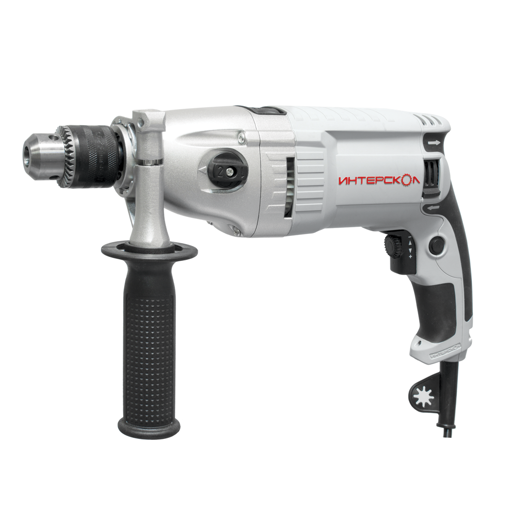 Профессиональная двухскоростная ударная дрель ДУ-16/1050ЭР Интерскол номинальной мощностью 1050 Вт, количество оборотов на 1 ступени достигает 1200 об/мин, на второй - 2000, а ударов на 1 ступени - 19200, на 2-й - 3000 сверло для этой дрели подходит диам. 1 - 16 мм. Дрель удобна в использовании, благодаря эргономической конструкции, прорезиненной рукоятки, вспомогательной ручки и простотой эксплуатации, также облегчает выполнение задач, расположенный на корпусе фиксатор кнопки для длительных работ. В ней имеется возможность смены направления вращения, а также плавное регулирование оборотов. Эта дрель будет отличным помощником для дома и для ремонтных бригад.